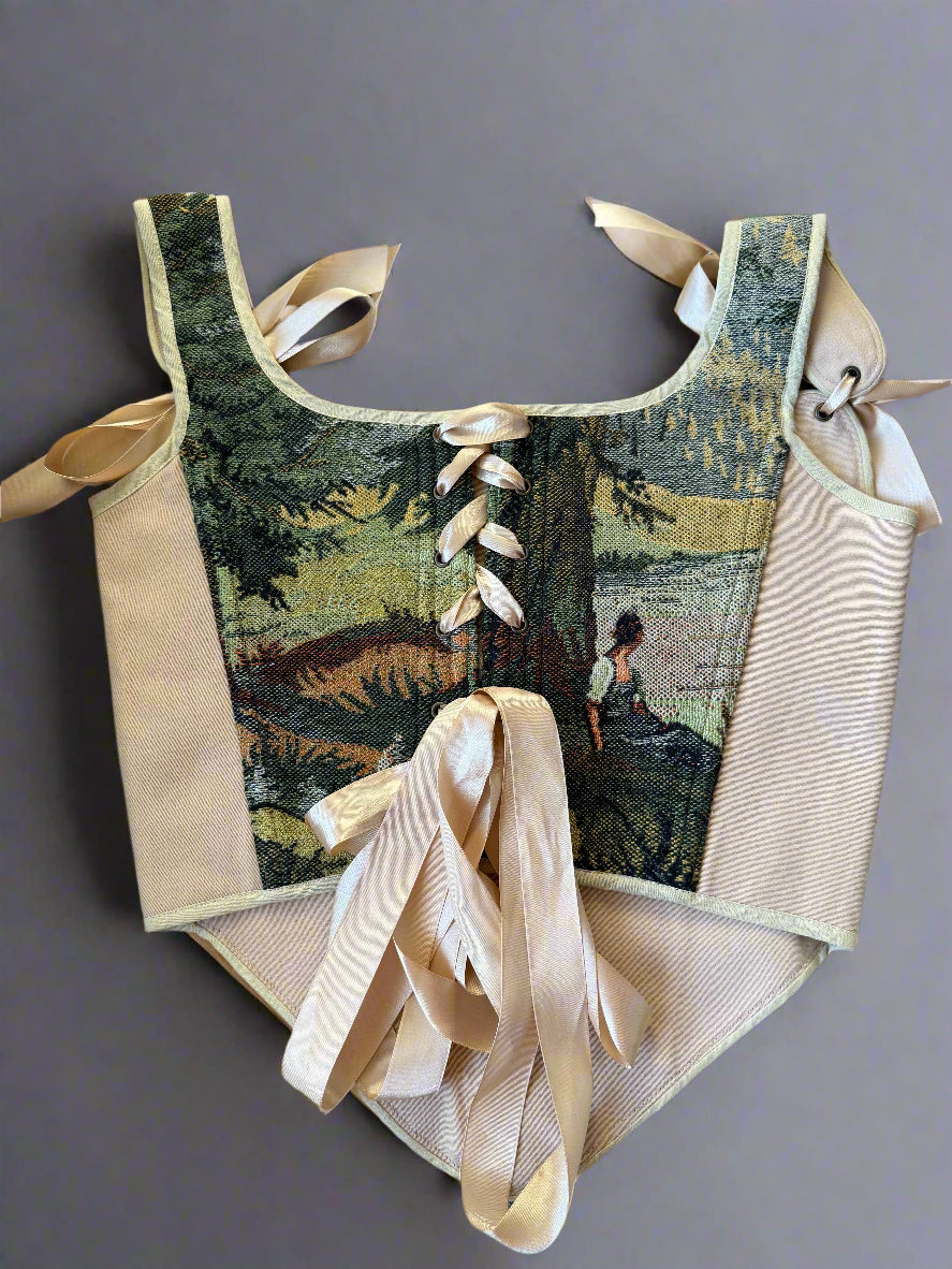 Lace-up Vintage Tapestry Corset Top, “Glacier Lake” Pattern