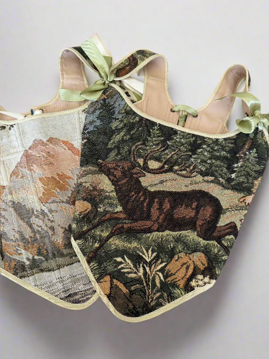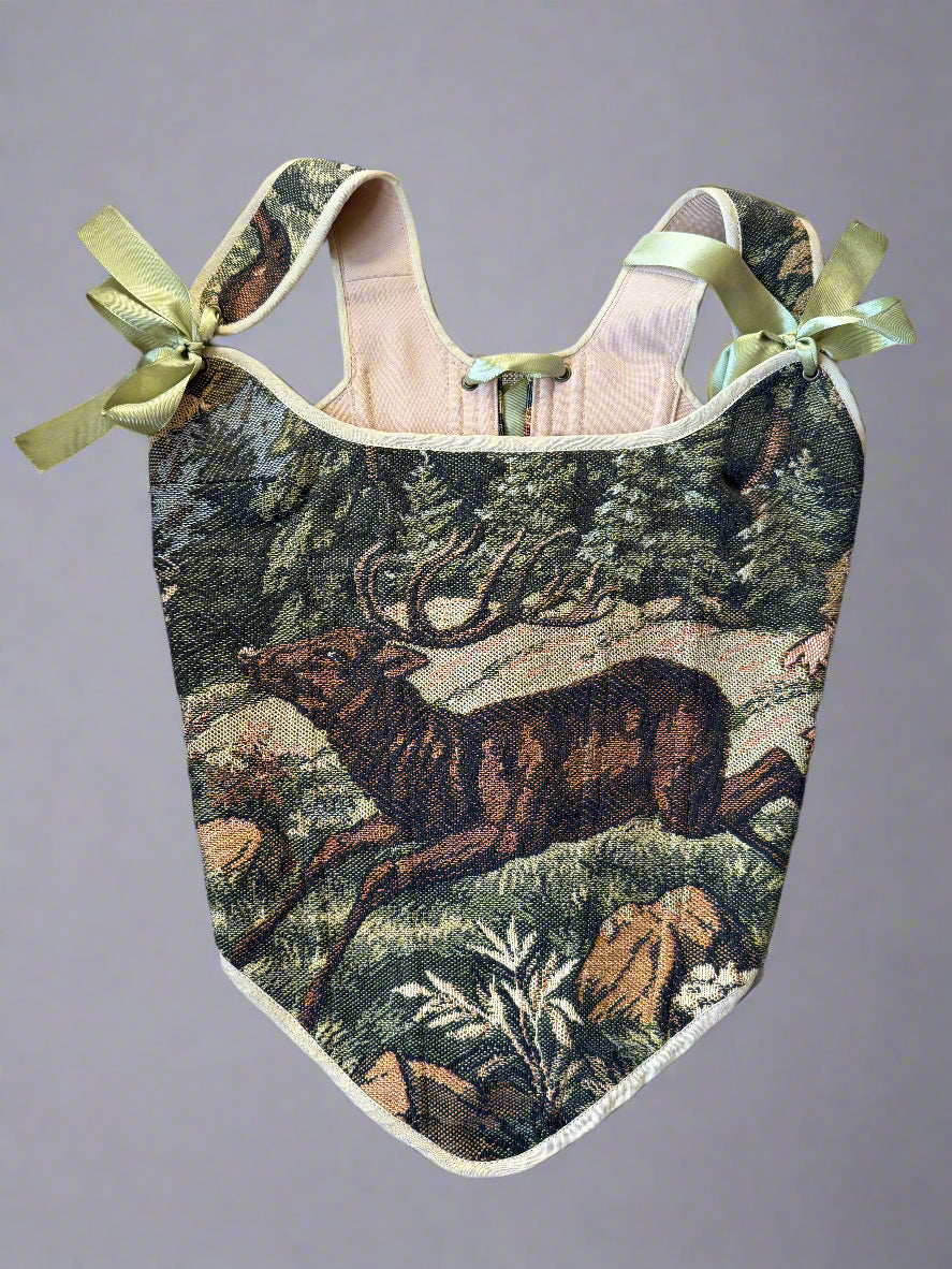 Lace-up Vintage Tapestry Corset Top, "Running Stag” Pattern