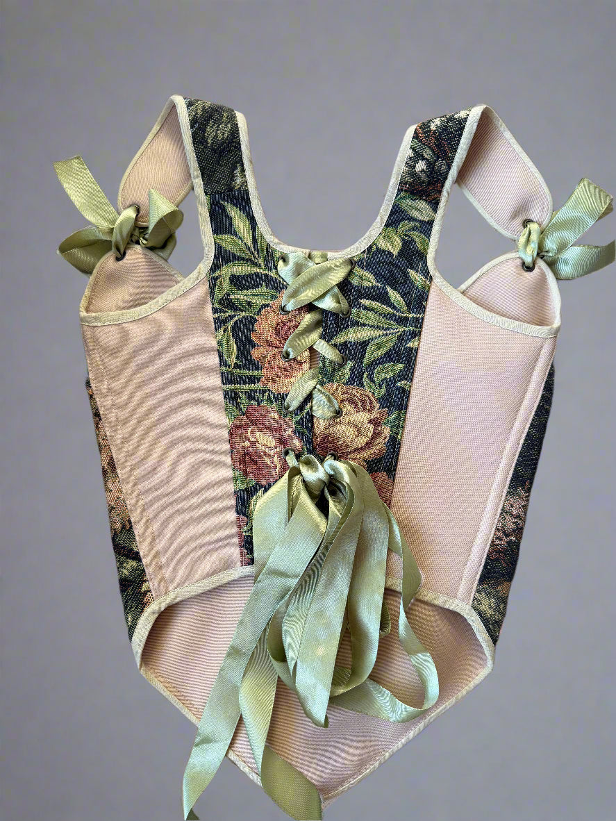 One of a kind corset top is created from the upcycled 1960s Eastern Germany vintage tapestry.
