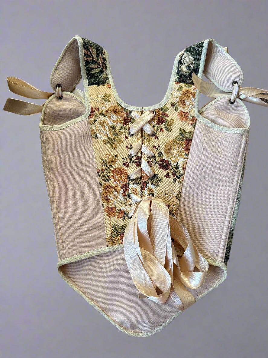 One of a kind corset top is created from the upcycled 1960s Eastern Germany vintage tapestry.